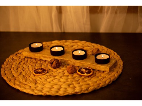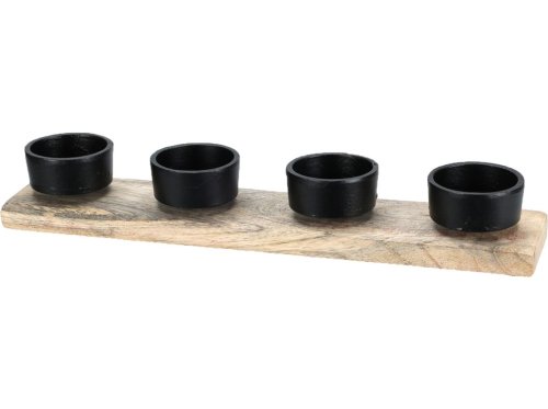Adventní kovový svícen o rozměru 305 × 60 × 45 mm pojme 4 čajové svíčky a je umístěn na dřevěném tácku. Černé provedení a kombinace s přírodním dřevem vytváří elegantní a stylový dekorativní prvek. Stabilní a bezpečné umístění svíček zajišťuje pohodlné a praktické použití.