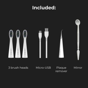Součástí balení je veškeré potřebné příslušenství pro optimální a účinnou každodenní ústní hygienu. Použití různého příslušenství zajišťuje působivý výsledek a odstraňuje plak i na těžko přístupných místech