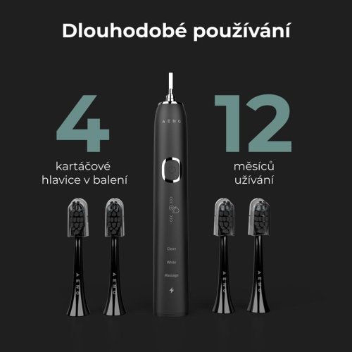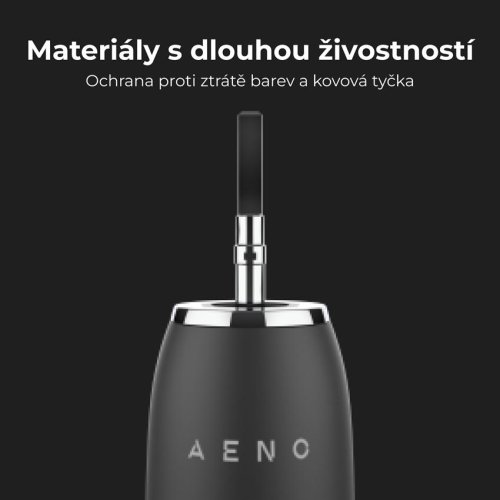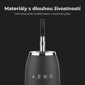 Sonické zubní kartáčky AENO jsou vyrobeny z odolných a spolehlivých materiálů. Tělo přístroje má ochranu proti vyblednutí barvy a uvnitř obsahuje pevnou kovovou stopku.