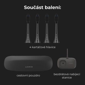 Sonické zubní kartáčky AENO se dodávají s bezdrátovou nabíjecí základnou, takže stačí kartáček nechat v základně a je vždy připraven k použití. Přibližně 5 hodin bezdrátového nabíjení zajistí plné nabití.