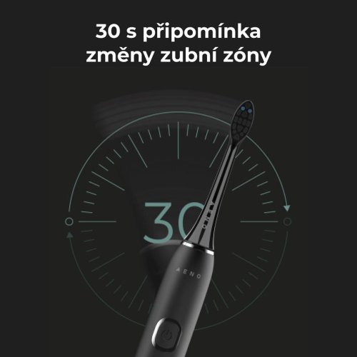 Inteligentní systém, kterým jsou zubní kartáčky AENO vybaveny, vám okamžitě připomene, že je třeba 4x za 30 sekund změnit zónu čištění zubů pro účinnější hygienu.