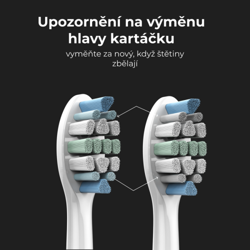 Vždy poznáte, kdy je třeba vyměnit hlavu kartáčku: jakmile modré indikační štětinky zbělají, je nejvyšší čas.