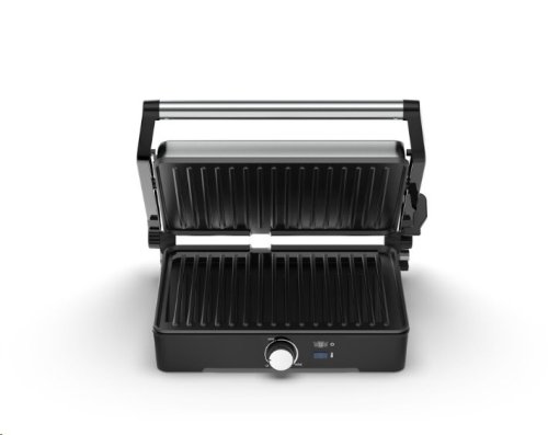 Dodatečné funkce: Regulace teploty, Protiskluzové nožičky, Odkapávač na olej, Max úhel otevření 180°, Nepřilnavé pláty, Kontrolka zapnutí/vypnutí, Grilovací plocha: 290x234 mm
