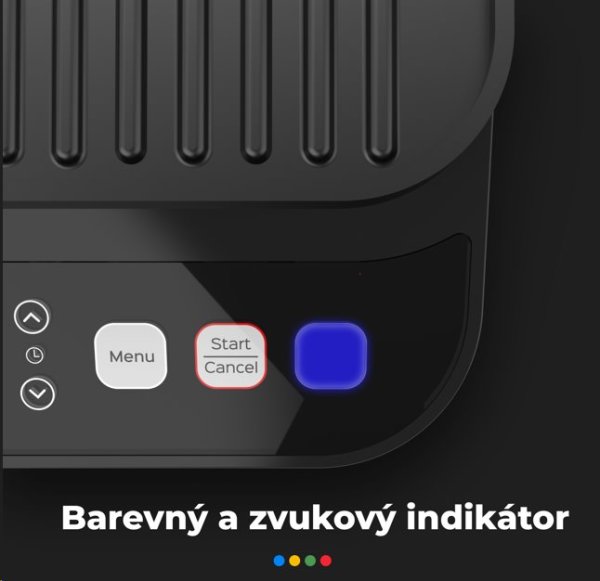 LED displej, bezpečné nehřející dotykové ovládání, barevná a zvuková signalizace