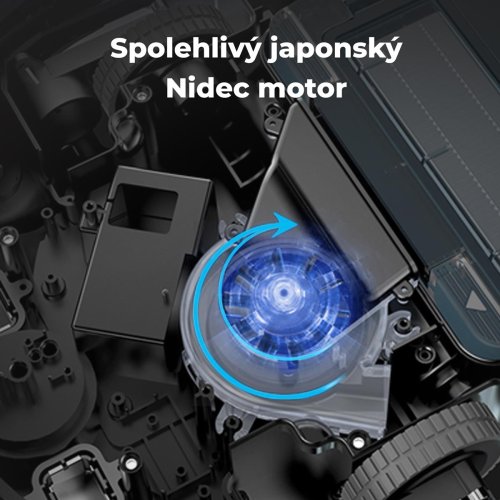 Robotický vysavač vydrží dlouho díky motoru Nidec, který zajišťuje špičkový výkon a dlouhotrvající spolehlivost.