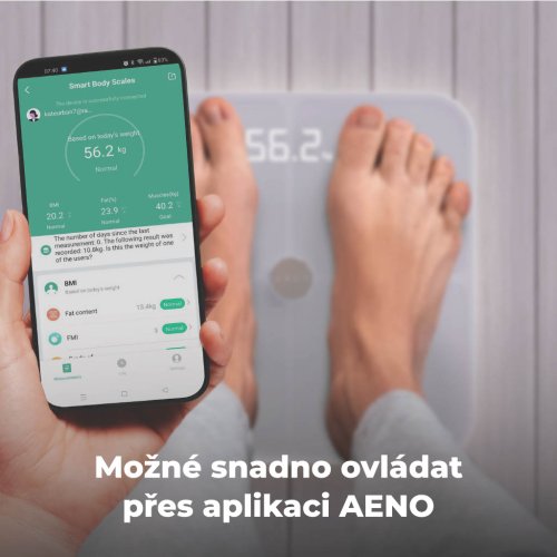 Chytrá osobní váha AENO BS1S je navržena tak, aby vyhovovala širokému spektru uživatelů a může se pochlubit vysokou nosností až 180 kg. Tato robustní konstrukce zajišťuje, že se každý bez ohledu na velikost může spolehnout na přesné a konzistentní měření. Ať už jste vzpěrač těžkých vah, nebo teprve začínáte svou fitness cestu, naše váhy vám poskytnou potřebnou podporu.