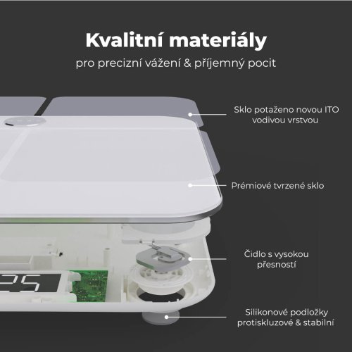 Snadno udržujte nedotčený stav své váhy. Chytrá osobní váha AENO BS1S má povrch z tvrzeného ITO skla, které je odolné a snadno se čistí. Tento praktický design nejenže vypadá elegantně a sofistikovaně, ale také zajišťuje, že vaše váha zůstane hygienická a v perfektním stavu po mnoho let.