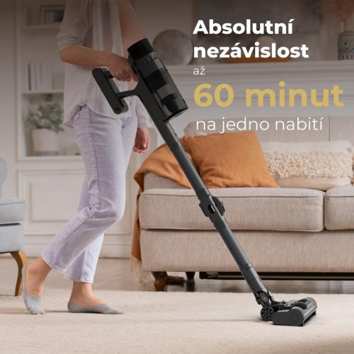 Nezastavujte úklid kvůli nabíjení. AENO SC2 bateriový vysavač zvládne vysávat až 60 minut bez nabíjení. To je dostatek času na vysát domácnost o velikosti 70m2.