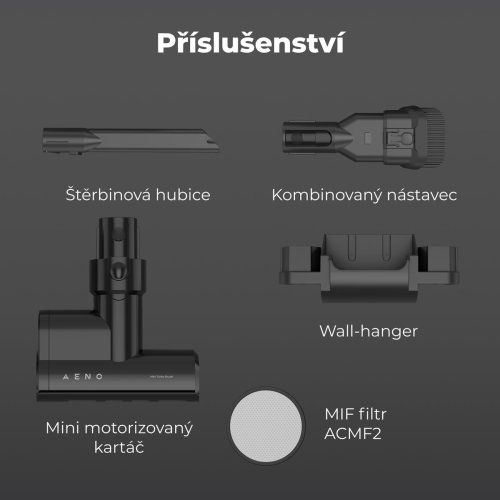 Vysavač s hlavním univerzálním kartáček, Štěrbinová hubice, Kombinovaný nástavec, Mini-motorizovaný kartáč, držák na stěnu