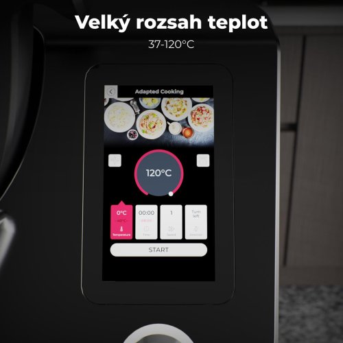Široký teplotní rozsah varného robota CR1S umožňuje použít různé techniky vaření. Nižší nastavení (37-50 °C) použijte pro jemné vaření sous vide, které zachovává živiny a chuť a zároveň vytváří dokonale křehký pokrm. Při vyšším nastavení (až 120 °C) můžete rychle a efektivně smažit nebo vařit suroviny. Tato všestrannost umožňuje vaření při nízkých i vysokých teplotách, díky čemuž je model CR1S vhodný pro jakýkoli recept, který si vymyslíte. Bez ohledu na to, jaký pokrm připravujete, tento robot zajistí optimální kontrolu teploty.