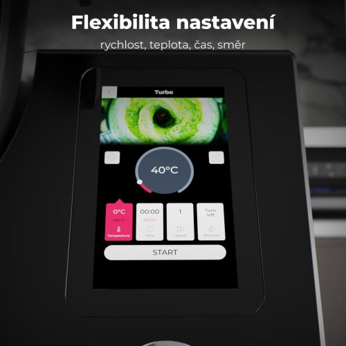 Ovládání varného robota CR1S je neuvěřitelně snadné díky velkému 5palcovému dotykovému displeji. Rozhraní je intuitivní, s jasnými ikonami a srozumitelnými pokyny, takže i když nejste technicky zdatní, budete se při jeho používání cítit jistě. Jasná a citlivá obrazovka usnadňuje úpravu nastavení, prohlížení receptů a přepínání mezi jednotlivými režimy vaření během několika sekund. Uspořádání bez tradičních tlačítek dodává přístroji elegantní, moderní vzhled. Díky této dotykové obrazovce je vaření jednodušší a příjemnější.