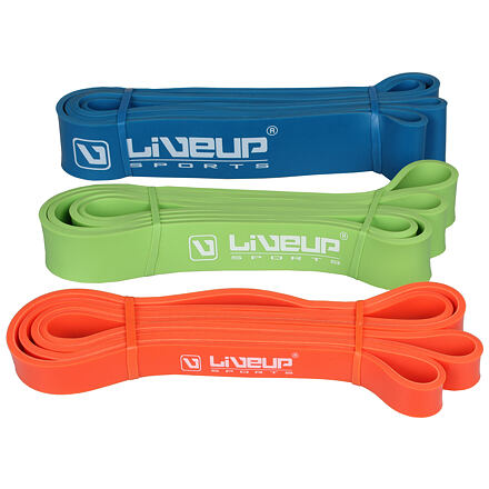 Posilovací gumy LiveUp 208 cm (obvodová délka) x 0,45 cm najdou využití při všech druzích tréninku, u kterých se provádí protahovací a posilovací cviky celého těla. Aerobic gumy LiveUp 208 x 0,45 cm se vyrábějí ve třech různých barvách / šířkách (oranžová / 2,1 cm; zelená / 3,2 cm; modrá / 4,5 cm), pro docílení progresivního cvičení. Odpor Light (oranžová): 11 – 30 kg Medium (zelená): 16 – 38 kg Heavy (modrá): 23 – 57 kg