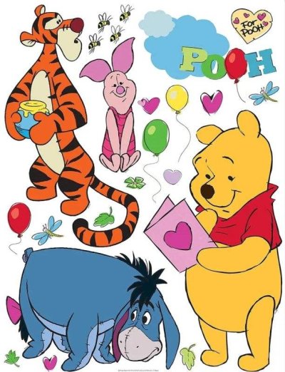 AG Design Nálepka na zeď Medvídek Pů Nálepka na archu 42,5x65 cm. Samolepky drží na hladném povrchu. Lze opakovaně přelepit na jiné místo. Na archu najdete každý obrázek jako jednotlivou samolepku, kterou můžete umístit dle vaší fantazie. Při lepení uhlazujte samolepku hadříkem, aby samolepka dobře přilnula ke stěně. Materiál: PVC Rozměr: 42,5x65 cm