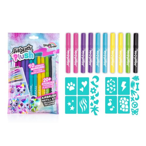 Náhradní originální barevné náplně do airbrushe. Součástí balení je 10 barev a 20 šablon. Vhodné pro děti od 6 let.