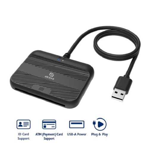 Akasa externí čtečka karet čtečka karet pro online bankovnictví, digitální podpisy a aplikace pro smart karty