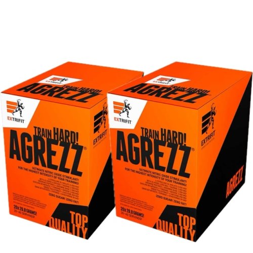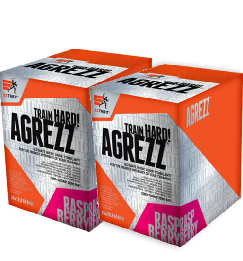 Celkem 8 850 mg pumpovacích látek: citrulin DL-malát, arginin a prémiová složka PepForm® Arginine Peptides – mimořádně silný arginin v peptidové formě! Jedná se o unikátní složku, kterou používají jen ty nejdražší a nejlepší produkty na trhu! Aminokyselina beta-alanin v ohromné dávce 4 000 mg pro maximální výdrž svalů. Aminokyselina tyrosin v dávce 1 000 mg pro dosažení optimálního fyzického a mentálního výkonu. Kofein, taurin a extrakt zeleného čaje podpoří soustředění na výkon, nakopnou a oddálí pocit únavy. Vy tak budete moct efektivně trénovat po delší dobu než normálně! DMAE a inosin: moderní předtréninkové látky, které najdete jen v těch nejpokročilejších produktech. Každý sáček skrývá maximální povolenou denní dávku DMAE, kterou můžete v ČR pořídit! Piperin (extrakt z pepře): velmi ceněná látka s řadou pozitivních účinků na zdraví – podporuje imunitu, činnost jater, krevní oběh v malých cévách a maximalizuje účinky ostatních látek v produktu. Cholin a synefrin (extrakt z pomerančovníku) přispívají k využití tuků v energetickém metabolismu. Na své si tak přijdou i sportovci v rýsovací fázi a ti, kteří si hlídají tělesnou hmotnost. Extra silný pre-workout vhodný i do diety Velkou výhodou produktu je nulový obsah sacharidů a tuku. Produkt je tak vhodný i pro sportovce ve fázi rýsování. Navíc díky účinným látkám, jako jsou zelený čaj, piperin nebo cholin, podporuje AGREZZ® efektivní metabolismus tuků. Tento produkt je určen pro náročné sportovce. Zažijete novou dimenzi tréninku! Je to skutečně silný produkt, dodržujte tedy doporučené dávkování a neužívejte jej krátce před spánkem. Je tak silný, že jeho účinek by mohl přetrvávat i v době, kdy již potřebujete regenerovat. Dokonalá chuť v praktickém balení Většina pre-workoutů nechutná dobře, to ale není případ produktu AGREZZ®! Díky mnohaletým zkušenostem s ochucováním suplementů jsme všechny příchutě vyladili k absolutní dokonalosti. Vzhledem k vysokému obsahu a typu účinných látek se tak jedná o naprostý unikát! A abyste nemuseli odsypávat prášek z velkého balení, Extrifit® pro Vás připravil produkt v sáčcích, ve kterých je dávka naprosto přesně odměřena. Sáček je malý, praktický a můžete jej vzít s sebou kamkoliv. V případě potřeby stačí rozpustit ve vodě a nápoj je hotov!