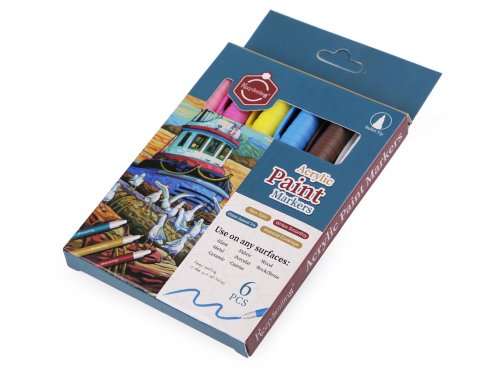 Akrylový popisovač má vysokou kryvost, je rychleschnoucí. Je vhodný na povrchy jako je papír, kámen, dřevo, textil, plátno a kov. Můžete jej použít i na plochy bez základní barvy, na očištěný, odmaštěný a suchý povrch. Vyznačuje se snadnou aplikací, je určený pro vnitřní použití. Náš tip: zkuste techniku tečkování, akrylové popisovače se výborně hodí na tečkované mandaly. Popisovače s vysoce pigmentovaným akrylovým inkoustem rychle schnou, nemusíte se bát, že se při malování rozmažou. Vytvoří velmi odolný neprůhledný a lesklý povrch na světlých i tmavých površích. Popisovače se střední kulatou špičkou se snadno ovládají, jsou vhodné pro polotučné čáry a kreslení větších detailů i vyplňování velkých ploch. Sada č. 1 - oranžová, fialová světlá, zelená, červená, fialová tmavá, černá barva.