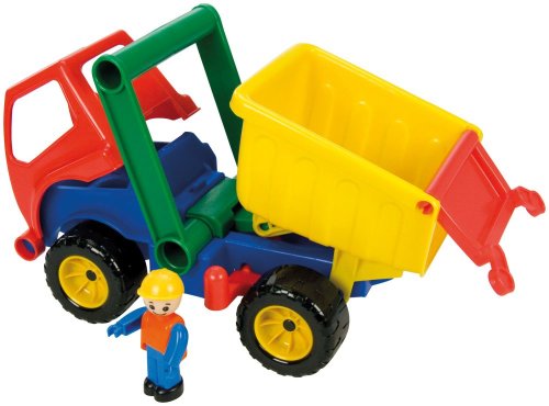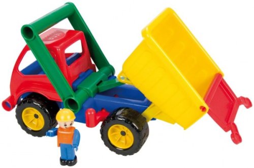 Aktivní auto sklápěč z kvalitního plastu a velmi pevnou stavbou. Je plně mechanicky funkční. Obsahuje pojistku proti nežádoucímu vyklopení, odklopitelnou kabinu a vyjímatelného panáčka. Délka: 29 cm. Vhodné pro kluky od 3 let.