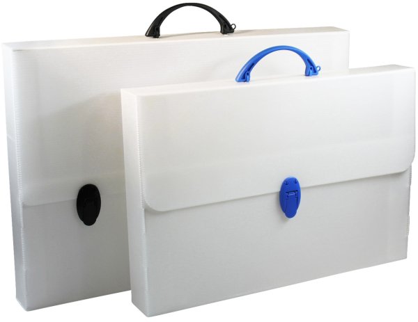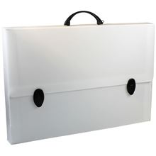Aktovka s rukojetí a dvěma zámky, vhodná pro uložení a přenos dokumentů do formátu A3 Materiál: polypropylen, odolný a omyvatelný Tloušťka materiálu: 2,5 mm a 480 g/m2 Barva: bílá, rukojeť a zámky v …