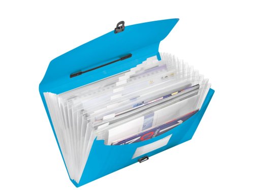 Aktovka s držadlem a přihrádkami Esselte VIVIDA Aktovka na spisy ve svěžích barvách a čtverečkovaném designu Vivida Vyrobeno z průhledného polypropylenu tloušťky 0,67 mm Obsahuje 12 rozšiřitelných přihrádek …