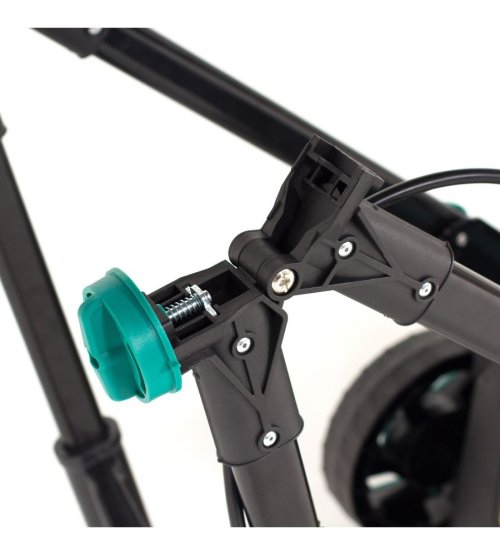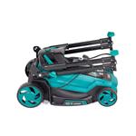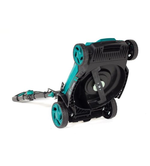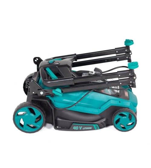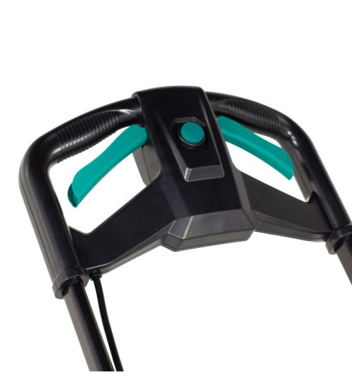 Velkou výhodou sekačky je její skladnost díky sklápěcím rukojetím. V horní části krytu najdete praktickou rukojeť, která vám usnadní a urychlí její zvedání nebo přenášení.