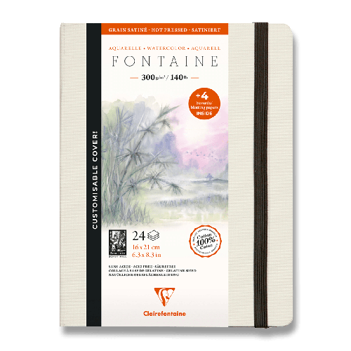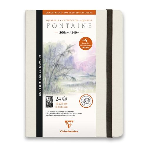 Akvarelové album Clairefontaine Fontaine Hot Pressed má 100% bavlněný za tepla lisovaný papír, který je vhodný pro detailní akvarelové práce jako jsou portréty.