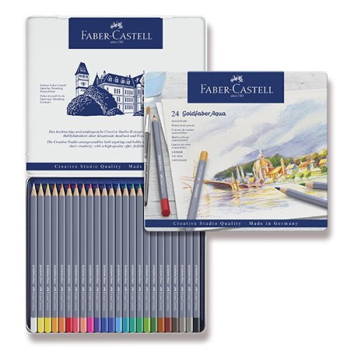Akvarelové pastelky Faber-Castell Goldfaber Aqua - plechová krabička, 24 barev