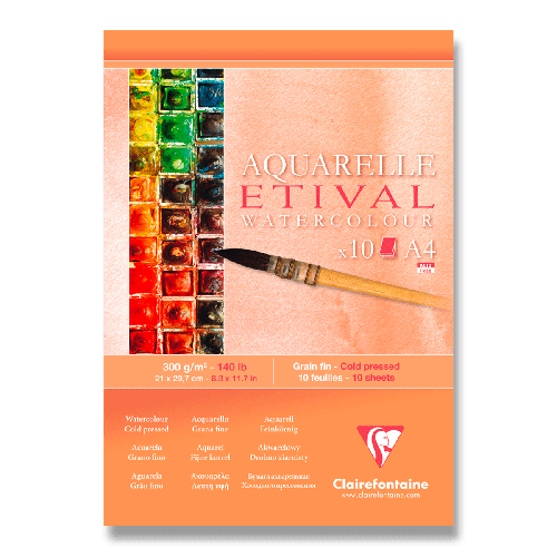 Akvarelový blok Clairefontaine Etival Study Cold Pressed 300 g má 100% přírodní celulózový papír, který je vhodný pro začátečníky, příležitostné uživatele nebo studenty.