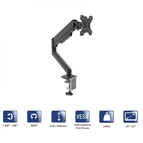 Jeho pokročilá konstrukce s plynovým ramenem umožňuje snadné nastavení polohy monitoru a díky možnosti montáže velké obrazovky s úhlopříčkou až 32 palců nabízí širokou škálu kompatibility monitorů.