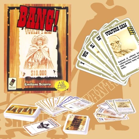 Bang, bang, bang! Bandité honí šerifa. Šerif pálí po banditech. Odpadlík kuje pikle chvíli tam a zase tady. Kulky sviští kolem uší. A kdo z hráčů je pomocník šerifa, připraven za něj položit život? A kdo je bezcitný bandita, který si přeje šerifův konec? Pokud to chcete zjistit, taste své zbraně (tedy karty)! Ve hře Bang! je důležité sledovat ostatní hráče, abyste včas odhalili hráčovu identitu.