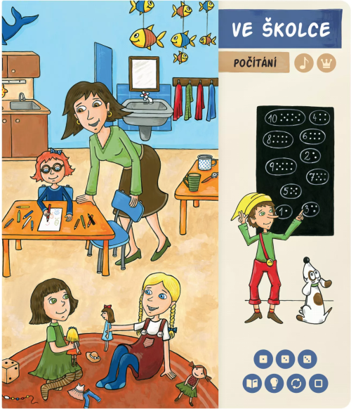 Interaktivní mluvící dětská kniha s Elektronickou Albi tužkou 2.0 z edice Kouzelné čtení seznámí děti předškolního věku s barvami, tvary, části těla, čísly nebo třeba protiklady.