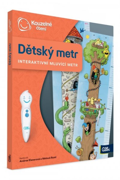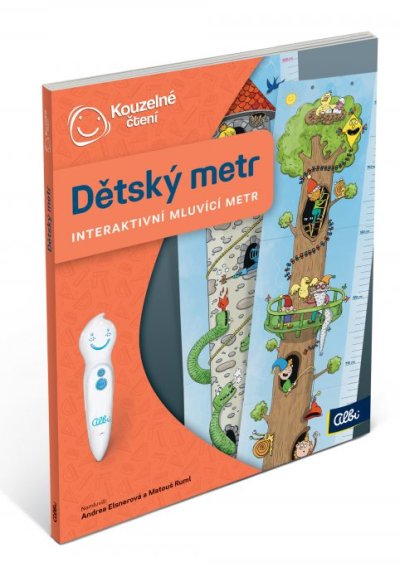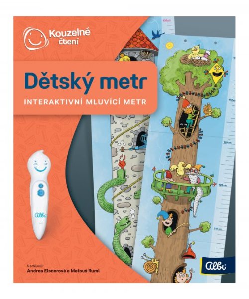 UPOZORNĚNÍ: Dětský metr funguje pouze s elektronickou tužkou ALBI (není součástí balení). Oboustranný nástěnný metr z edice Kouzelné čtení děti nejen změří, ale zavede je i do světa pohádek . Na jedné straně je pobaví princ zachraňující princeznu a draka ze spárů zlého rytíře Bořislava z Lotrovic a na druhé straně strom plný skřítků. Kromě výšky metr každých pět centimetrů řekne i něco navíc a na pozadí si mohou děti poslechnout písničku. Dětský metr obsahuje přes 200 zvuků a textů Kouzelné čtení Dětský metr je namluven Andreou Elsnerovou a Matoušem Rumlem. Rozložený metr: 20 cm × 96 cm (s měřitelnou výškou do 150 cm) Doporučeno pro děti od 3 let.