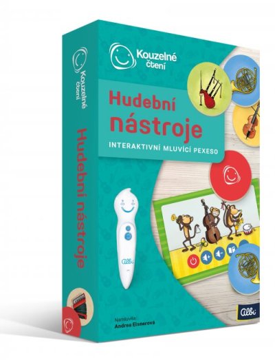 Kouzelné mluvící pexeso Hudební nástroje kombinuje vizuální a poslechovou paměť dětí. Děti se tak budou učit rozeznávat zvuky, která nás obklopují. Nabízí více herních variant. Lze jej hrát jako klasické pexeso, kdy jsou všechny karty otočeny obrázky dolů a děti poznávají karty podle zvuku. Snadnější variantou je, že se otočí pouze půlka kartiček a děti hledají druhou kartičku podle zvuku.