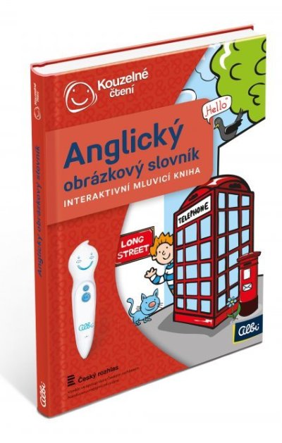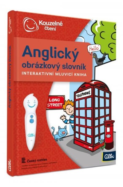 UPOZORNĚNÍ: Tato kniha funguje pouze s elektronickou tužkou ALBI (není součástí balení). Interaktivní anglický obrázkový slovník z edice Kouzelné čtení pro začátečníky a mírně pokročilé. Zábavnou formou si vytvoříte nebo rozšíříte slovní zásobu a naučíte se správně vyslovovat anglická slovíčka a jednoduché věty. Slovník je rozdělen do jedenácti tématických kapitol, které obsahují přes tisíc anglických slovíček včetně obrázků a příkladů použití. Slovník je doplněn kompletním českým překladem. Pomůcka při výuce angličtiny pro děti od 4 let. Kouzelné čtení je unikátní výukový systém, který vám přináší spoustu informací a zábavy. Stačí, když se lehce dotknete elektronickou tužkou obrázku nebo textu, ozve se příslušná informace, zvuk nebo hudba. Kouzelné čtení je určeno dětem v předškolním věku, tak dětem starším, ale bezpochyby zaujme i dospělé. Díky speciální technologii mohou knihy plně využívat i děti v předškolním věku, které ještě číst neumí. Samy si tak mohou „přečíst“ pohádku nebo se hravou formou naučit poznávat barvy, čísla, písmena či nejrůznější tvary. Výhody Kouzelného čtení ALBI: