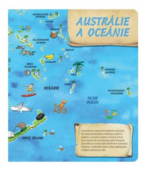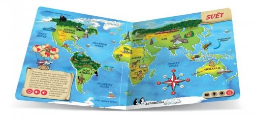 UPOZORNĚNÍ: Tato kniha funguje pouze s elektronickou tužkou ALBI (není součástí balení). Objevte krásy naší planety! Seznamte se se všemi kontinenty a oceány světa. Zjistěte, jak se všechny státy a jejich hlavní města jmenují a jaké zajímavosti můžete v jednotlivých státech obdivovat. Tato kniha obsahuje osm různých map. Na jednotlivých stranách se seznámíte se všemi kontinenty, poznáte země na naší planetě a zjistíte, kde tyto země leží. Nechybí zde ani oceány, moře, velké řeky a pohoří, které jsou nedílnou součástí naší planety. Obrázky na mapách vám ukáží, jaká zvířata, stavby či jiné zajímavosti můžete v jednotlivých zemích najít. Své znalosti si pak můžete ověřit pomocí zábavných kvízů, které naleznete na každé dvojstraně. Kniha obsahuje přes 1800 zvuků a textů. Kniha je namluvena známým českým hercem Otakarem Brouskem ml. Kouzelné čtení je unikátní výukový systém, který vám přináší spoustu informací a zábavy. Stačí, když se lehce dotknete elektronickou tužkou obrázku nebo textu, ozve se příslušná informace, zvuk nebo hudba. Kouzelné čtení je určeno dětem v předškolním věku, tak dětem starším, ale bezpochyby zaujme i dospělé. Díky speciální technologii mohou knihy plně využívat i děti v předškolním věku, které ještě číst neumí. Samy si tak mohou „přečíst“ pohádku nebo se hravou formou naučit poznávat barvy, čísla, písmena či nejrůznější tvary. Kouzelné čtení - ilustrační video