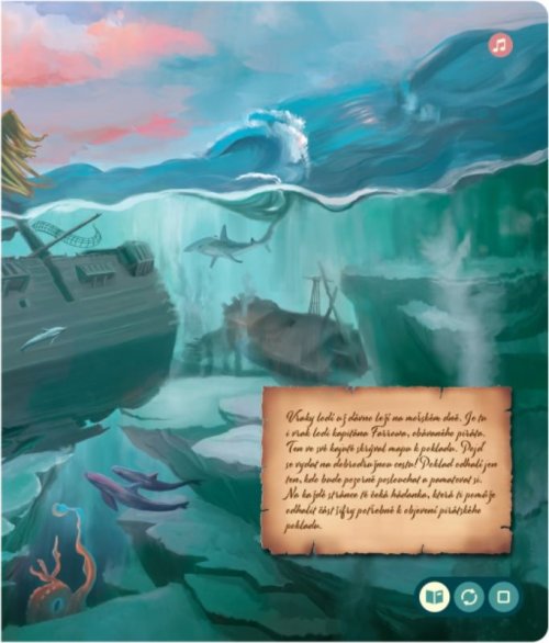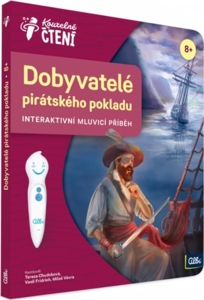 UPOZORNĚNÍ: Kniha Dobyvatelé pirátského pokladu funguje pouze s elektronickou tužkou ALBI (není součástí balení). Další kniha z edice Kouzelné čtení zavede děti na dobrodružnou výpravu za pokladem . Na každé stránce na ně čeká hádanka , která jim pomůže odhalit část šifry potřebné k objevení pirátského pokladu . Staň se součástí příběhu! Tato kniha není jen obyčejným vyprávěním o cestě za pokladem kapitána Farrowa. Máš jedinečnou možnost podstoupit dobrodružnou výpravu, na jejímž konci tě čeká poklad . Ale nebude to jednoduché. Budeš muset čelit i mytologickým postavám . Je potřeba získat šifru a také správně zvolit osobu, která ti k pokladu dopomůže. Důležitá však bude i tvá pozornost , paměť a dedukce . Hodně štěstí! Kniha Dobyvatelé pirátského pokladu obsahuje přes 400 zvukových stop . Ilustrace: Lucie Jašková Text: Lucie Krystlíková Redakce obsahu: Aneta Surovčáková Namluvili: Tereza Chudobová, Vasil Fridrich, Miloš Vávra Vzniklo ve spolupráci se studiem SoundLab. ISBN 978-80-88403-92-0 NECHTE KNIHY MLUVIT! Kouzelné čtení je unikátní výukový systém, který vám přináší spoustu informací a zábavy. Stačí, když se lehce dotknete elektronickou tužkou obrázku nebo textu, ozve se příslušná informace, zvuk nebo hudba. Kouzelné čtení je určeno dětem v předškolním věku, tak dětem starším, ale bezpochyby zaujme i dospělé. Díky speciální technologii mohou knihy plně využívat i děti v předškolním věku, které ještě číst neumí. Samy si tak mohou „přečíst“ pohádku nebo se hravou formou naučit poznávat barvy, čísla, písmena či nejrůznější tvary. Výhody Kouzelného čtení ALBI: