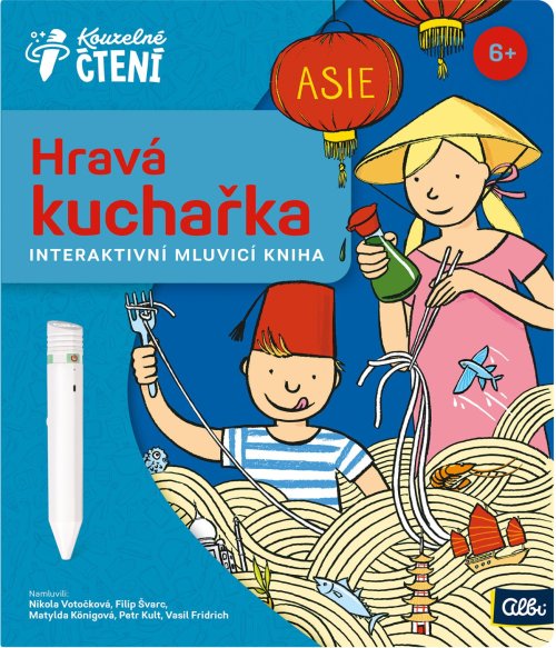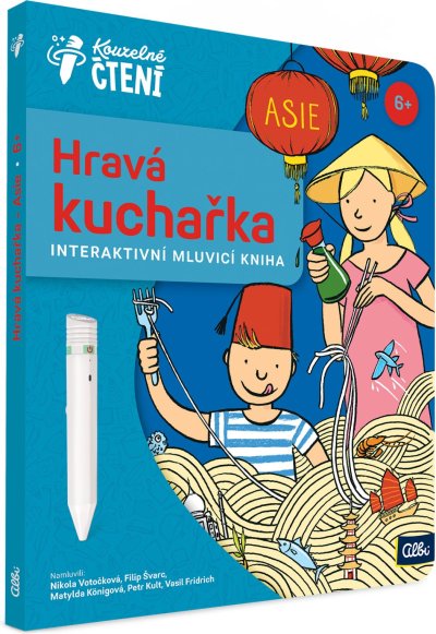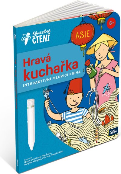 UPOZORNĚNÍ: Kniha funguje pouze s elektronickou tužkou ALBI (není součástí balení). Laura a Oliver znovu objevují světovou kuchyni! Tentokrát se vypravili až do daleké Asie a navštívili Japonsko, Čínu, Vietnam, Thajsko, Indii, Turecko a Libanon. Rádi se podělí o své cestovatelské zkušenosti a zajímavosti z těchto zemí, ale hlavně o místní kulinářské speciality . Uvařte si spolu s nimi jejich nejoblíbenější recepty . Hravá kuchařka: Asie z edice Kouzelné čtení provede děti od 6 let nejznámějšími asijskými zeměmi. Malí čtenáři se v ní dozví o daných zemích spoustu zajímavých informací a navíc si budou moci s rodiči místní speciality i zkusit uvařit . Kuchařka obsahuje přes 2 500 zvukových stop . Namluvili: Nikola Votočková, Filip Švarc, Matylda Königová, Petr Kult a Vasil Fridrich Text: Kublanka Ilustrace: Jan Laštovička ISBN 978-80-7688-037-5 Kniha vznikla ve spolupráci se Studiem Beep. NECHTE KNIHY MLUVIT! Kouzelné čtení je unikátní výukový systém, který vám přináší spoustu informací a zábavy. Stačí, když se lehce dotknete elektronickou tužkou obrázku nebo textu, ozve se příslušná informace, zvuk nebo hudba. Kouzelné čtení je určeno dětem v předškolním věku, tak dětem starším, ale bezpochyby zaujme i dospělé. Díky speciální technologii mohou knihy plně využívat i děti v předškolním věku, které ještě číst neumí. Samy si tak mohou „přečíst“ pohádku nebo se hravou formou naučit poznávat barvy, čísla, písmena či nejrůznější tvary. Výhody Kouzelného čtení ALBI:
