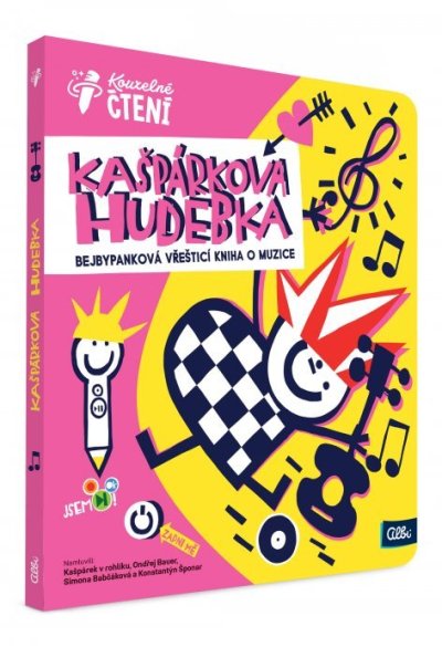 UPOZORNĚNÍ: Zpívánky fungují pouze s elektronickou tužkou ALBI (není součástí balení). Co je ušní červ? Jak to, že nota celá nemá nohu? Proč Kašpárek v rohlíku hraje na theremin? A víš, že děláš vlny? Na 16 stranách bejbypankové vřeštící učebnice Kašpárkova hudebka z edice Kouzelné čtení se dozvíš mnoho z historie i teorie hudby , ale také rozezníš prdlafon, poslechneš si muzikantské vzkazy od slavných kámošů Kašpárka a ve velkém kvízu zjistíš, na jaký nástroj se máš naučit. Ať už hraješ na kytaru, nebo jen na máminy nervy, můžeš si založit kapelu ! A hlavně se už vždycky radovat z hudby. Protože je zkrátka boží. Ilustrace: Lukáš Urbánek Text: Pavel Kružík a Hana Kružíková Fotografie: Marek Novotný Hudba: Kašpárek v rohlíku Namluvili: Kašpárek v rohlíku, Ondřej Bauer, Simona Babčáková a Konstantýn Šponar Kniha obsahuje přes 3333 zvukových stop . ISBN 978-80-88403-31-9 NECHTE KNIHY MLUVIT! Kouzelné čtení je unikátní výukový systém, který vám přináší spoustu informací a zábavy. Stačí, když se lehce dotknete elektronickou tužkou obrázku nebo textu, ozve se příslušná informace, zvuk nebo hudba. Kouzelné čtení je určeno dětem v předškolním věku, tak dětem starším, ale bezpochyby zaujme i dospělé. Díky speciální technologii mohou knihy plně využívat i děti v předškolním věku, které ještě číst neumí. Samy si tak mohou „přečíst“ pohádku nebo se hravou formou naučit poznávat barvy, čísla, písmena či nejrůznější tvary. Výhody Kouzelného čtení ALBI: