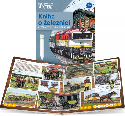 Kniha o železnici z edice Kouzelné čtení provede děti historií a vývojem tohoto druhu dopravy od koněspřežky až po nejmodernější vlaky 21. století. S touto mluvicí knihou zavítáte do železničního depa, zjistíte, jakým způsobem probíhá údržba trati a odhalíme vám, jak se provádí řízení a zabezpečení provozu na trati. Podíváme se také na to, jak vypadal vývoj vlaků a osobní dopravy u nás. Naše procházka skončí prohlídkou nádraží. Kniha o železnici obsahuje přes 1 000 zvukových stop (namluvili: Václav Knop a Simona Krajíčková).