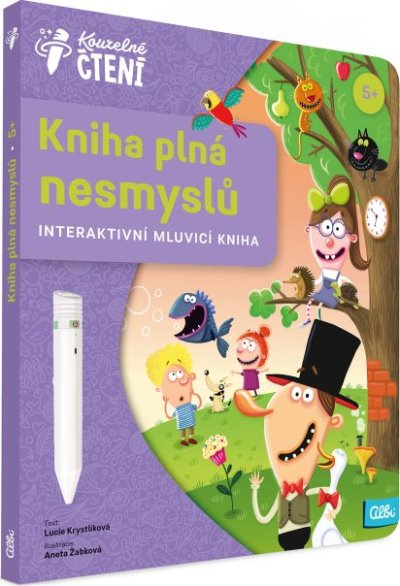 UPOZORNĚNÍ: Kniha plná nesmyslů funguje pouze s elektronickou tužkou ALBI (není součástí balení). Seznamte se s Majdou, Bárou a Šimonem a jejich zvířecími kamarády ! Majda ráda čte a miluje dobrodružství. Bára ze všeho nejraději řeší záhady a tráví čas ve vodě. Šimon rád kreslí a má plno fantazie. Navíc teď mají nového kamaráda – Zachariáše Nesmyslíka . Od té doby, co ho znají, zažívají ještě víc legrace než dřív. Díky jeho kouzelnému cylindru se totiž každé místo, na které se vypraví, zaplní těmi nejbláznivějšími nesmysly . Mluvicí Kniha plná nesmyslů z edice Kouzelné čtení je zábavná kniha, ve které budou malí čtenáři spolu se čtveřicí dětí objevovat spoustu legračních popletenin. Obsahuje přes 2 500 zvukových stop . Ilustrace: Aneta Žabková Text: Lucie Krystlíková Namluvili: Silvie Matičková, Klára Nováková, Michal Holán a Jakub Koudela ISBN 978-80-7688-112-9 Vzniklo ve spolupráci se Studiem Soundlab. NECHTE KNIHY MLUVIT! Kouzelné čtení je unikátní výukový systém, který vám přináší spoustu informací a zábavy. Stačí, když se lehce dotknete elektronickou tužkou obrázku nebo textu, ozve se příslušná informace, zvuk nebo hudba. Kouzelné čtení je určeno dětem v předškolním věku, tak dětem starším, ale bezpochyby zaujme i dospělé. Díky speciální technologii mohou knihy plně využívat i děti v předškolním věku, které ještě číst neumí. Samy si tak mohou „přečíst“ pohádku nebo se hravou formou naučit poznávat barvy, čísla, písmena či nejrůznější tvary. Výhody Kouzelného čtení ALBI: