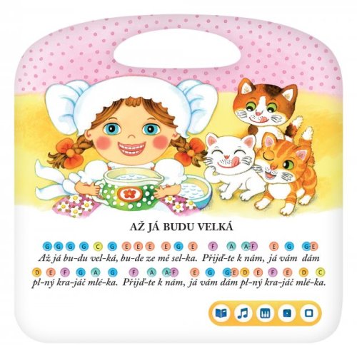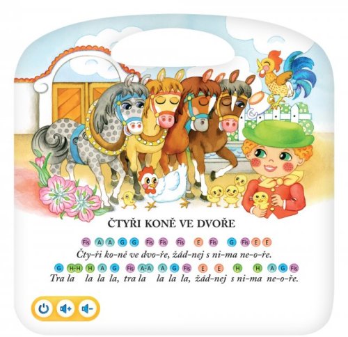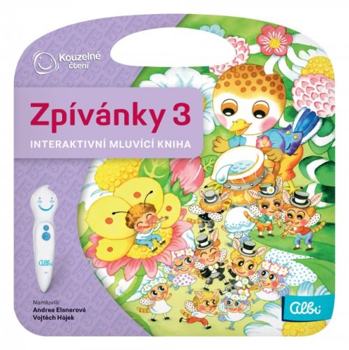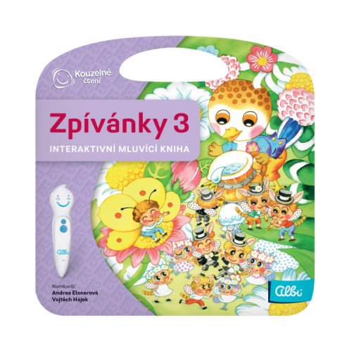 UPOZORNĚNÍ: Zpívánky fungují pouze s elektronickou tužkou ALBI (není součástí balení). Pokračování úspěšného prvního a druhého dílu z edice Kouzelné čtení! Zpívánky 3 jsou pokračováním jejich úspěšného prvního a druhého vydání z edice Kouzelné čtení. Interaktivní mluvící kniha je určena pro děti od 3 do 7 let. Kniha Zpívánky 3 obsahuje 12 mezi dětmi oblíbených lidových písniček včetně barevných not, které si děti mohou samy přehrát pomocí Kouzelného piana. Mohou si zahrát a zazpívat známé písničky jako Komáři se ženili, Já jsem z Kutný Hory, Šel zahradník, Až já budu velká, Měla babka čtyři jabka, Okolo Třeboně, Na tom pražským mostě, Okolo Frýdku cestička, Čtyři koně ve dvoře, Vyletěla holubička, Šly panenky silnicí a Tluče bubeníček. Písně v knize Zpívánky 3 si můžete přehrát ve 2 verzích - zpívané a instrumentální podobě. Pomocí ikony knihy a ikony jednoduchého kvízu se děti učí porozumět zpívanému textu. Kniha obsahuje přes 500 zvuků a textů . Je namluvena Andreou Elsnerovou a Vojtěchem Hájkem . NECHTE KNIHY MLUVIT! Kouzelné čtení je unikátní výukový systém, který vám přináší spoustu informací a zábavy. Stačí, když se lehce dotknete elektronickou tužkou obrázku nebo textu, ozve se příslušná informace, zvuk nebo hudba. Kouzelné čtení je určeno dětem v předškolním věku, tak dětem starším, ale bezpochyby zaujme i dospělé. Díky speciální technologii mohou knihy plně využívat i děti v předškolním věku, které ještě číst neumí. Samy si tak mohou „přečíst“ pohádku nebo se hravou formou naučit poznávat barvy, čísla, písmena či nejrůznější tvary. Výhody Kouzelného čtení ALBI: