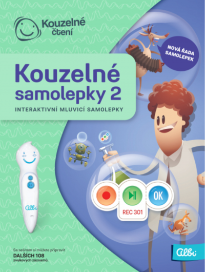 Oživte si své fotografie z dovolené, namluvte dětem svou vlastní knížku anebo vytvořte dětem hru! Kouzelné samolepky z edice Kouzelné čtení nabízí spoustu kreativní zábavy. Unikátní samolepky umožní nahrávat rodičům i dětem do tužky příběhy, vzkazy nebo zvuky. S použitím elektronické tužky si je pak mohou kdykoliv poslechnout. Jedná se o druhou sadu samolepek s novou číselnou řadou - zakoupením získáte 108 kouzelných samolepek pro nahrávání, kterými můžete rozšířit svou sadu prvních samolepek.