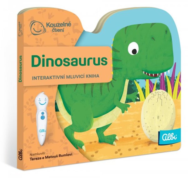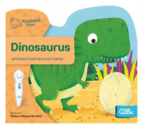 UPOZORNĚNÍ: Kniha Dinosaurus funguje pouze s elektronickou tužkou ALBI (není součástí balení). Dinosauři žili na naší planetě před mnoha a mnoha miliony let. Jací vlastně byli? Velcí, hluční a věčně hladoví! V knížce se potkáš s tyranosaurem rexem a brontosaurem. Stačí ji jen otevřít a na chvilku se ocitneš s obrovskými tvory v pravěku. V miniknize z edice Kouzelné čtení si o nich něco povíme, a když budeš chtít, můžeš se naučit i písničku. Minikniha Dinosaurus obsahuje přes 100 zvukových stop . Je namluvena Terezou a Matoušem Rumlovými. Doporučeno pro děti ve věku od 2 let. NECHTE KNIHY MLUVIT! Kouzelné čtení je unikátní výukový systém, který vám přináší spoustu informací a zábavy. Stačí, když se lehce dotknete elektronickou tužkou obrázku nebo textu, ozve se příslušná informace, zvuk nebo hudba. Kouzelné čtení je určeno dětem v předškolním věku, tak dětem starším, ale bezpochyby zaujme i dospělé. Díky speciální technologii mohou knihy plně využívat i děti v předškolním věku, které ještě číst neumí. Samy si tak mohou „přečíst“ pohádku nebo se hravou formou naučit poznávat barvy, čísla, písmena či nejrůznější tvary. Výhody Kouzelného čtení ALBI: