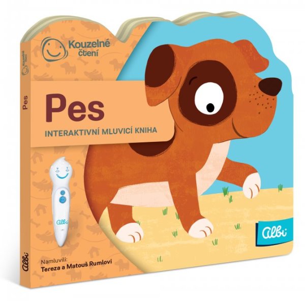 UPOZORNĚNÍ: Kniha Pes funguje pouze s elektronickou tužkou ALBI (není součástí balení). Kdo je nejlepší přítel člověka? Správně, pes ! Je to veselý a věrný společník. Někteří pejskové jsou velcí, jiní malí, někteří rádi lenoší a další chvilku neposedí, jedni jsou přátelští a další cení zuby. Otevři knížku a podívej se, jací pejskové se v ní schovávají. V miniknize z edice Kouzelné čtení si o něm něco povíme, a když budeš chtít, můžeš se naučit i písničku. Minikniha Pes obsahuje přes 100 zvukových stop . Je namluvena Terezou a Matoušem Rumlovými. Doporučeno pro děti ve věku od 2 let. NECHTE KNIHY MLUVIT! Kouzelné čtení je unikátní výukový systém, který vám přináší spoustu informací a zábavy. Stačí, když se lehce dotknete elektronickou tužkou obrázku nebo textu, ozve se příslušná informace, zvuk nebo hudba. Kouzelné čtení je určeno dětem v předškolním věku, tak dětem starším, ale bezpochyby zaujme i dospělé. Díky speciální technologii mohou knihy plně využívat i děti v předškolním věku, které ještě číst neumí. Samy si tak mohou „přečíst“ pohádku nebo se hravou formou naučit poznávat barvy, čísla, písmena či nejrůznější tvary. Výhody Kouzelného čtení ALBI: