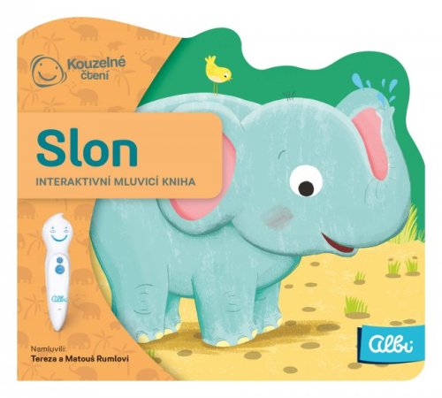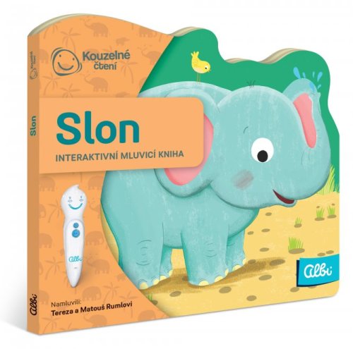 UPOZORNĚNÍ: Kniha Slon funguje pouze s elektronickou tužkou ALBI (není součástí balení). Šedivé zvíře s dlouhým chobotem místo nosu, se kterým umí dovádět - tak to je slon. Kdo by ho neznal! U nás se s ním můžeš potkat v zoologické zahradě, protože ve volné přírodě žije jen v daleké Africe a Asii. Uvidíš, že je přátelský a chytrý. V miniknize z edice Kouzelné čtení si o něm něco povíme, a když budeš chtít, můžeš se naučit i písničku. Minikniha Slon obsahuje přes 100 zvukových stop . Je namluvena Terezou a Matoušem Rumlovými. Doporučeno pro děti ve věku od 2 let. NECHTE KNIHY MLUVIT! Kouzelné čtení je unikátní výukový systém, který vám přináší spoustu informací a zábavy. Stačí, když se lehce dotknete elektronickou tužkou obrázku nebo textu, ozve se příslušná informace, zvuk nebo hudba. Kouzelné čtení je určeno dětem v předškolním věku, tak dětem starším, ale bezpochyby zaujme i dospělé. Díky speciální technologii mohou knihy plně využívat i děti v předškolním věku, které ještě číst neumí. Samy si tak mohou „přečíst“ pohádku nebo se hravou formou naučit poznávat barvy, čísla, písmena či nejrůznější tvary. Výhody Kouzelného čtení ALBI: