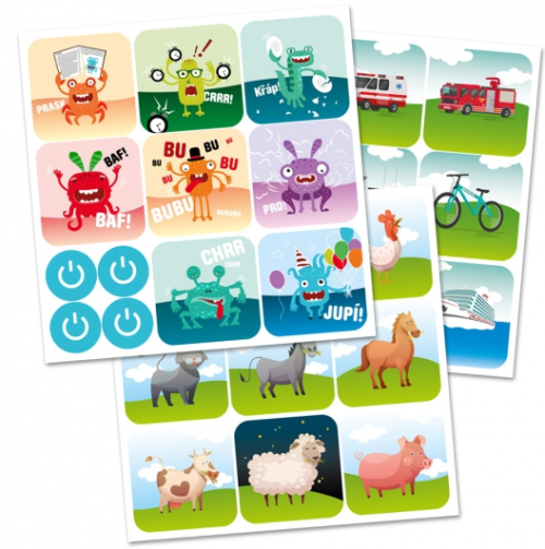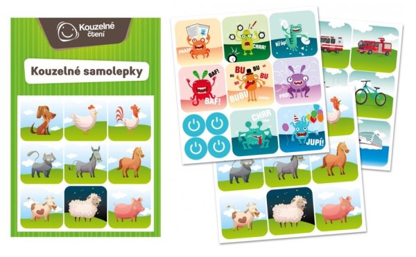 UPOZORNĚNÍ: Samolepky fungují pouze s elektronickou tužkou ALBI (není součástí balení). Pobavte se zvuky zvířátek, dopravních prostředků a neposedných příšerek se sadou ozvučených Kouzelných samolepek z edice Kouzelné čtení. Sada Kouzelných samolepek obsahuje 26 ozvučených samolepek (9 zvířátek, 9 dopravních prostředků, 8 příšerek) a 4 samolepky s tlačítky pro zapnutí. Úvodní slovo k samolepkám namluvil Jiří Lábus. Kouzelné čtení je unikátní výukový systém, který vám přináší spoustu informací a zábavy. Stačí, když se lehce dotknete elektronickou tužkou obrázku nebo textu, ozve se příslušná informace, zvuk nebo hudba. Kouzelné čtení je určeno dětem v předškolním věku, tak dětem starším, ale bezpochyby zaujme i dospělé. Díky speciální technologii mohou knihy plně využívat i děti v předškolním věku, které ještě číst neumí. Samy si tak mohou „přečíst“ pohádku nebo se hravou formou naučit poznávat barvy, čísla, písmena či nejrůznější tvary.