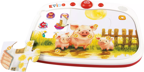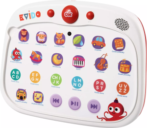 Dotykový tablík se zvuky a kvízy. Tablík, který je v českém jazyce, je doplněn o pohádky a písničky v angličtině.
