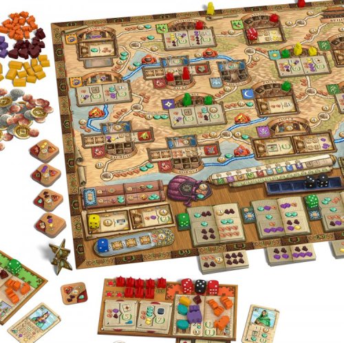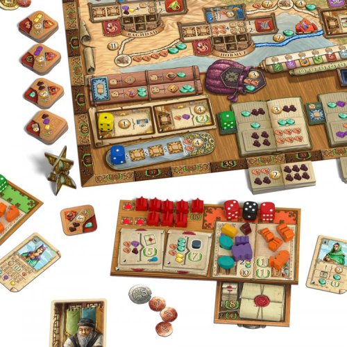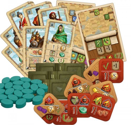170 kartonových žetonů, mincí a ukazatelů 160 dřevěných figurek a žetonů zboží a velbloudů 47 karet 26 dřevěných kostek 4 desky hráčů herní plán pravidla a přílohu pravidel