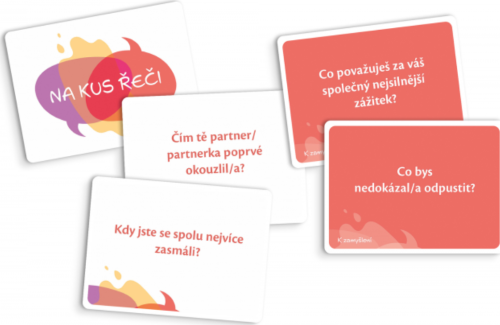 Na kus řeči je sada konverzačních karet, jejichž účelem je pomoci rozproudit či obohatit konverzaci o zajímavá témata, k nimž se třeba často obtížně hledají cesty.