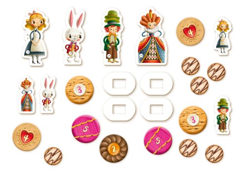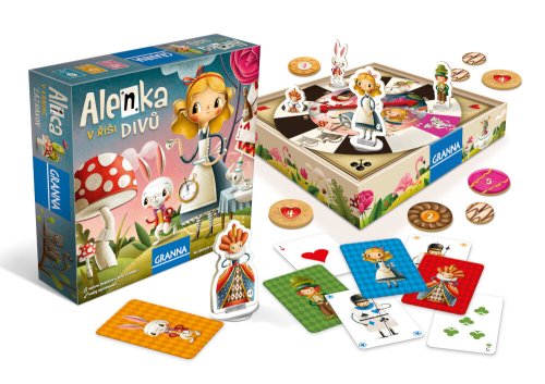 Tato pohádková hra vás zve k bláznivému závodu o chutné koláčky a sušenky. Ve hře zastupujete jednoho z protagonistů Alenčina dobrodružství v říši divů a soupeříte s dalšími postavami. Mluvící housenka, Šílený kloboučník či Srdcová královna vás provedou tímto kouzelným příběhem. Obsah balení: * 24 koláčků * 20 sušenek * 44 karet * 4 malé a 4 velké figurky * 8 plastových stojánků * 4 stojánky pro velké figurky * hodinová ručička * herní deska * český a slovenský návod * Délka hry: 20 min * Počet hráčů: 2-4